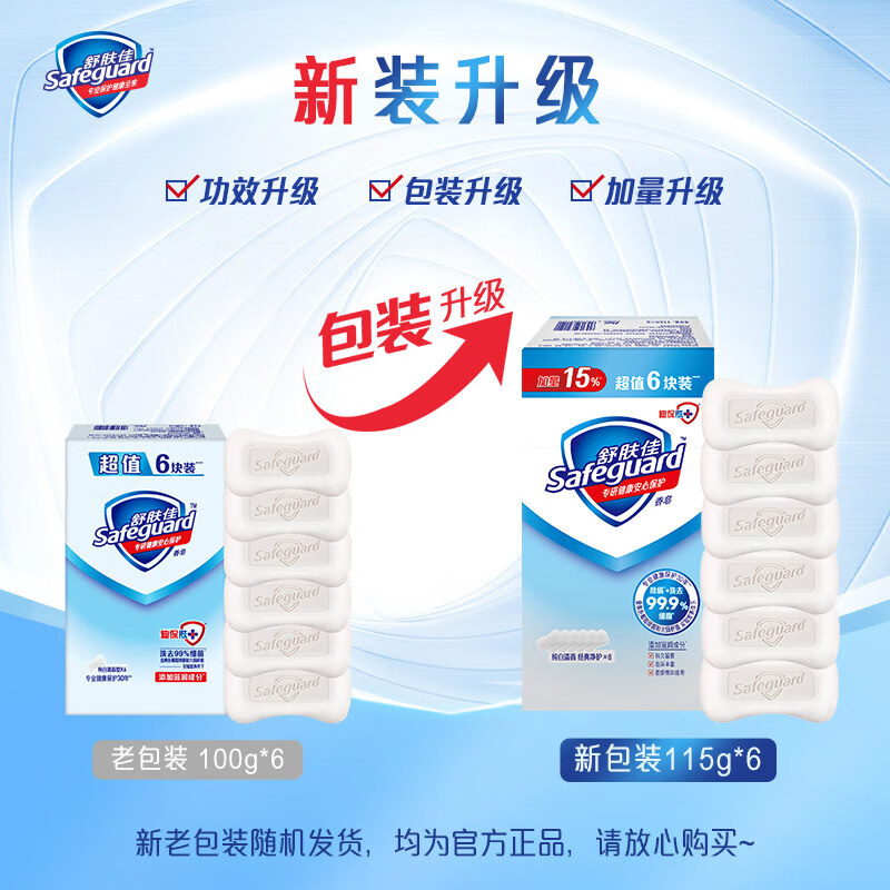 舒肤佳香皂 纯白清香6块皂 99.9%除菌 洗澡沐浴皂肥皂