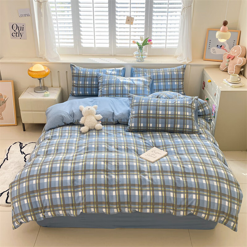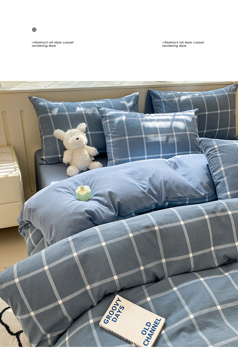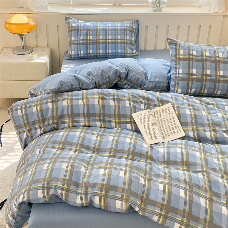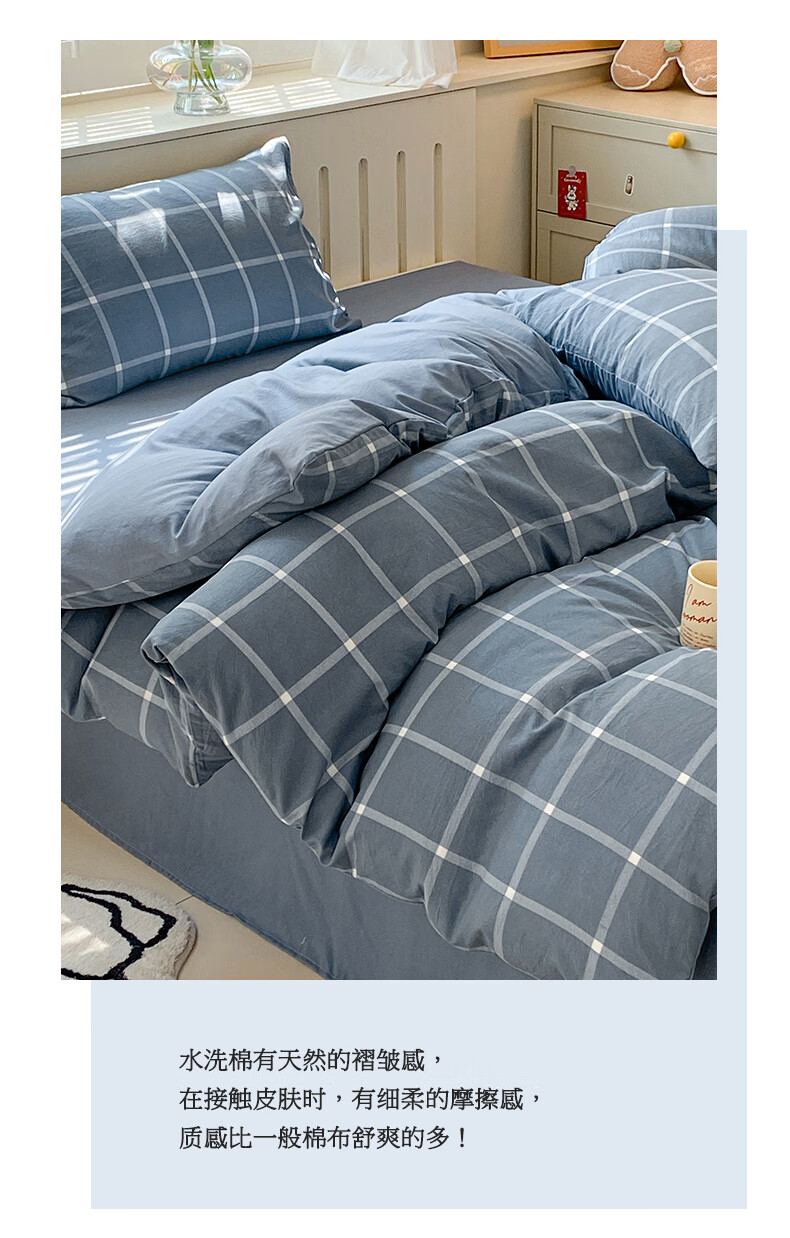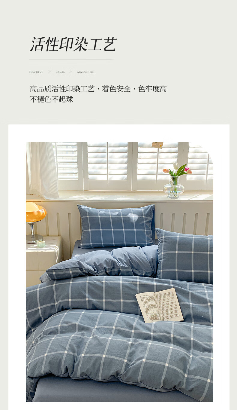 红豆家纺亲肤水洗棉床上四件套简约床单学生宿舍被套裸睡被罩家用床上用品 简约+海清【亲肤柔软 适合裸睡】 1.8m 床单款 四件套-被套200*230cm