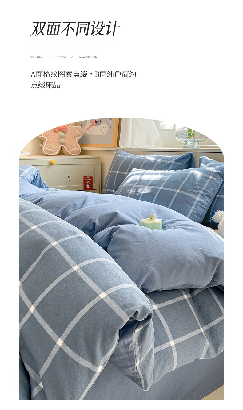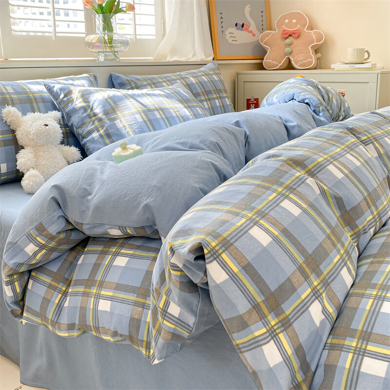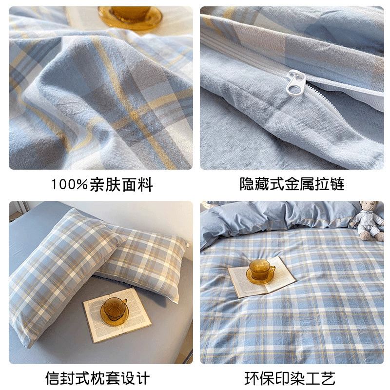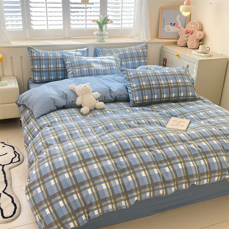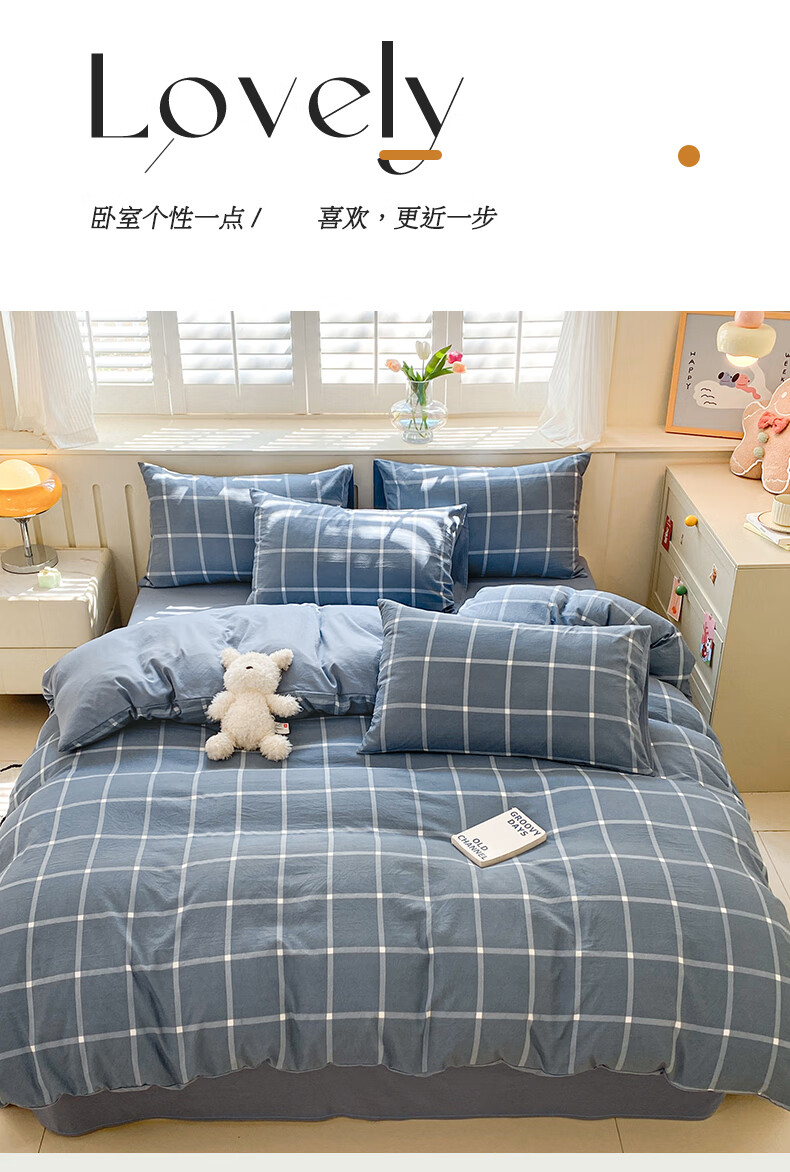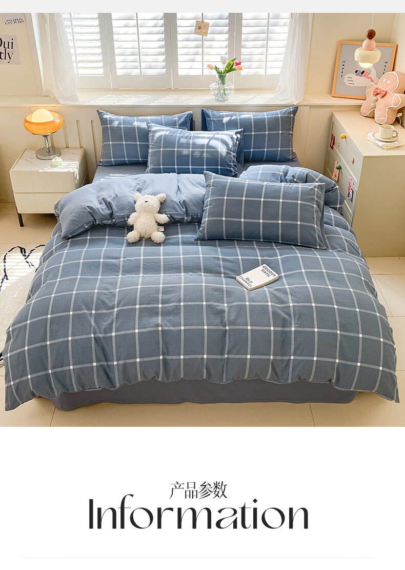 红豆家纺亲肤水洗棉床上四件套简约床单学生宿舍被套裸睡被罩家用床上用品 简约+海清【亲肤柔软 适合裸睡】 1.8m 床单款 四件套-被套200*230cm