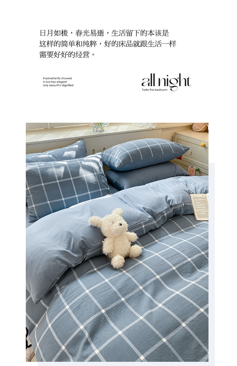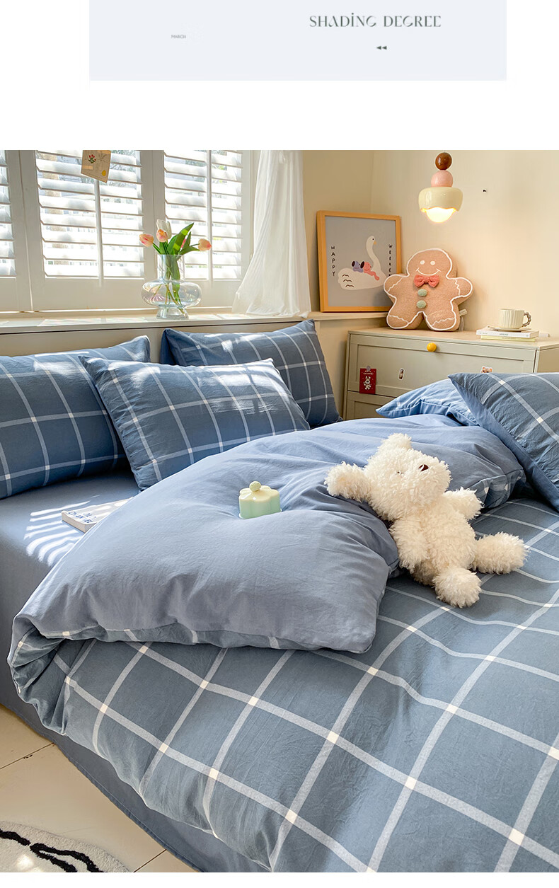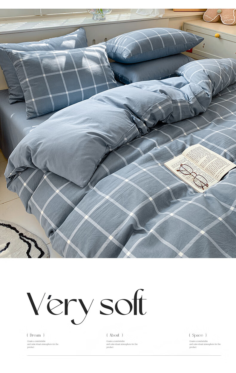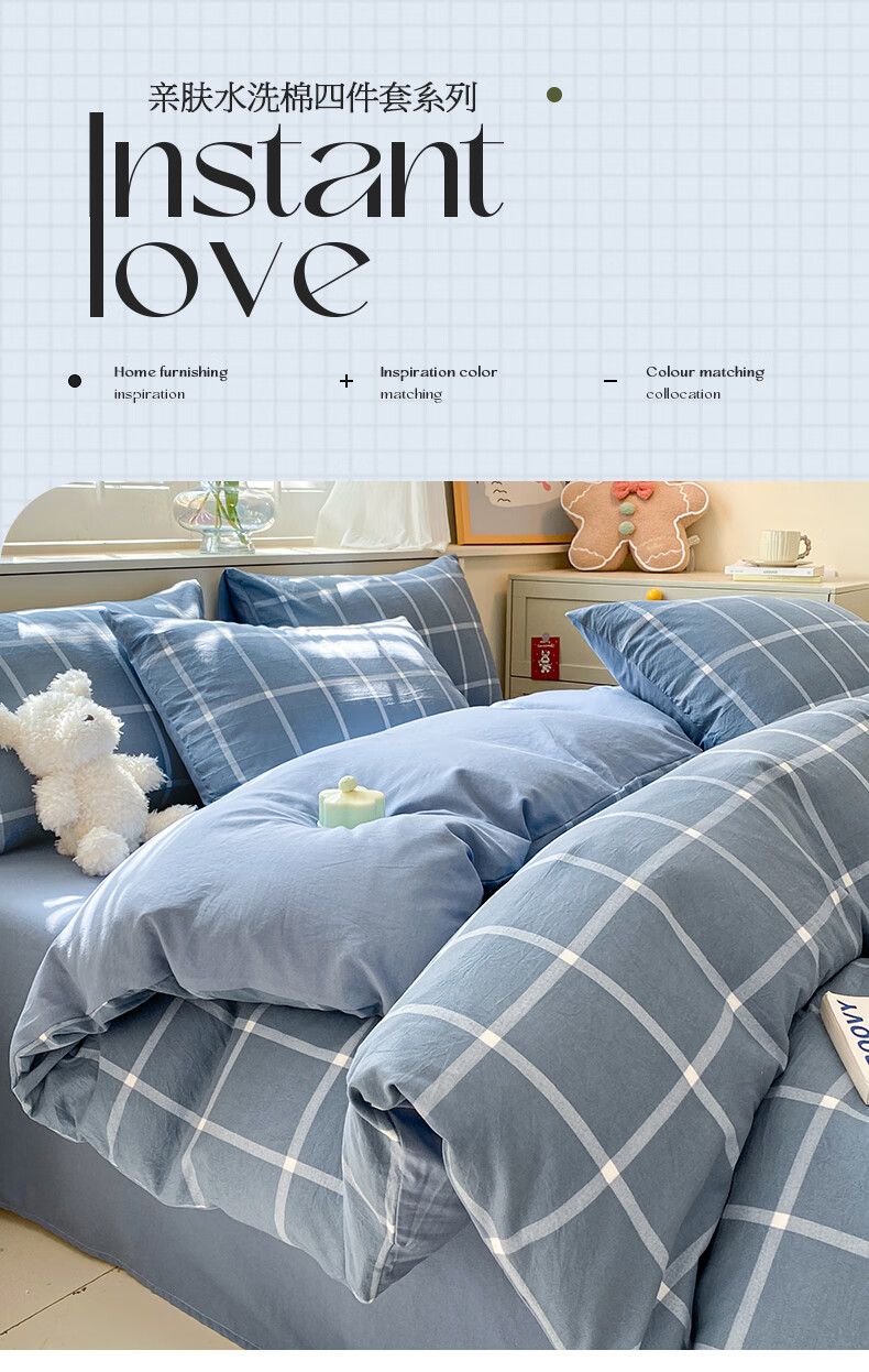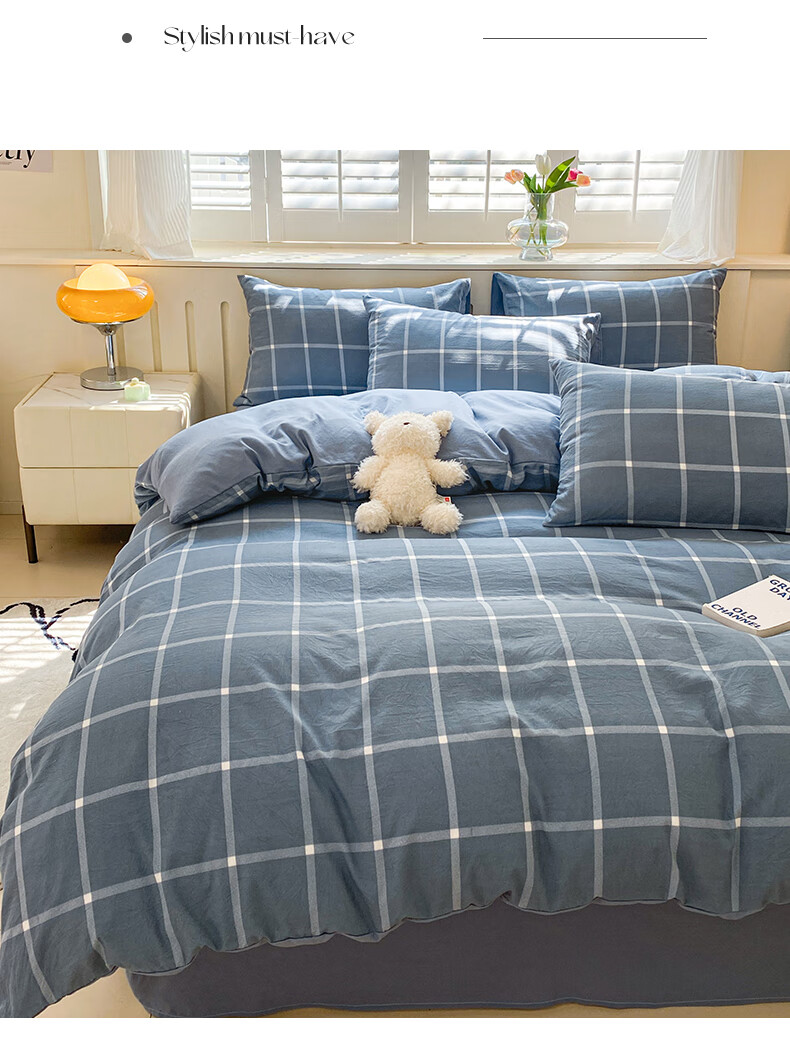 红豆家纺亲肤水洗棉床上四件套简约床单学生宿舍被套裸睡被罩家用床上用品 简约+海清【亲肤柔软 适合裸睡】 1.8m 床单款 四件套-被套200*230cm