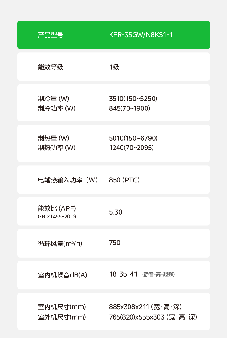 美的空调 大1.5匹 酷省电 新一级能效 变频冷暖 省电壁挂式卧室挂机 国家补贴 KFR-35GW/N8KS1-1