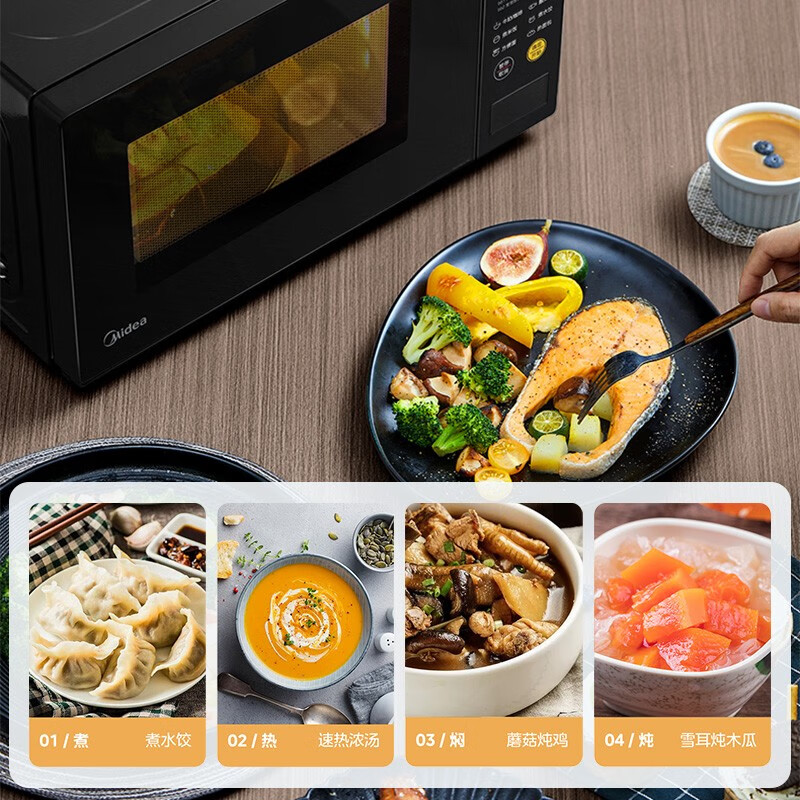 美的(Midea)微波炉家用 360°转盘加热 一键解冻 700W大火力 智能菜单 按键操作均匀速热 M21 微波杀菌 20升