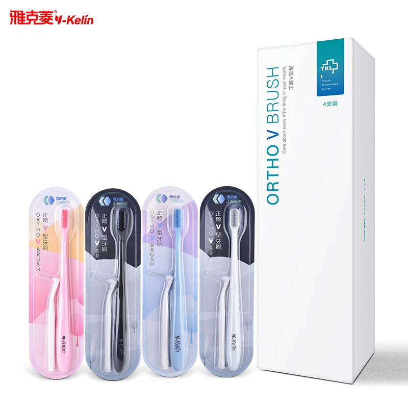 雅克菱 正畸牙刷V型牙套牙箍牙齿专用软毛戴牙套牙刷儿童成人 V型刷1盒装(4支混色) 4支 套装