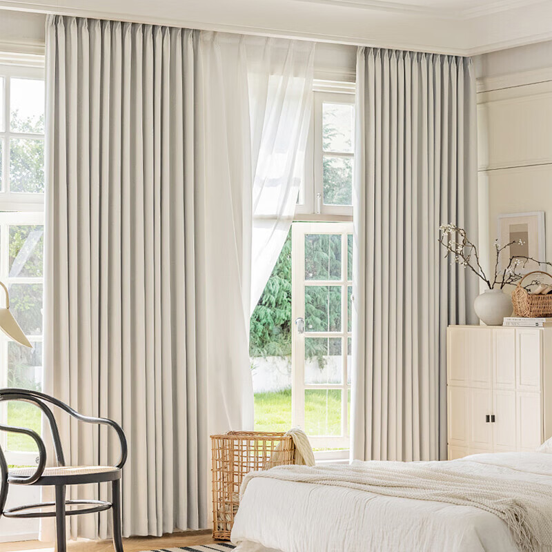 觉铭窗帘遮光卧室全遮光遮阳帘遮光帘 41梭椰奶色2宽*2高1片挂钩窗帘